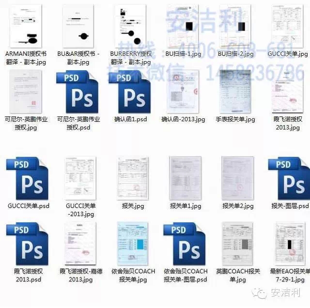 据腾讯科技了解,祥鹏恒业无论是阿玛尼、Burberry等各个奢侈品品牌的授权书,还是能证明这些奢侈品是“海外购”产品海关关单,均系其用PS软件伪造的。该公司通过扫描其它公司的授权文件以及海关关单,通过修改日期及公司名称等方法,将自己的公司渠道“移花接木”为正式授权,并从海外进货的正经渠道。